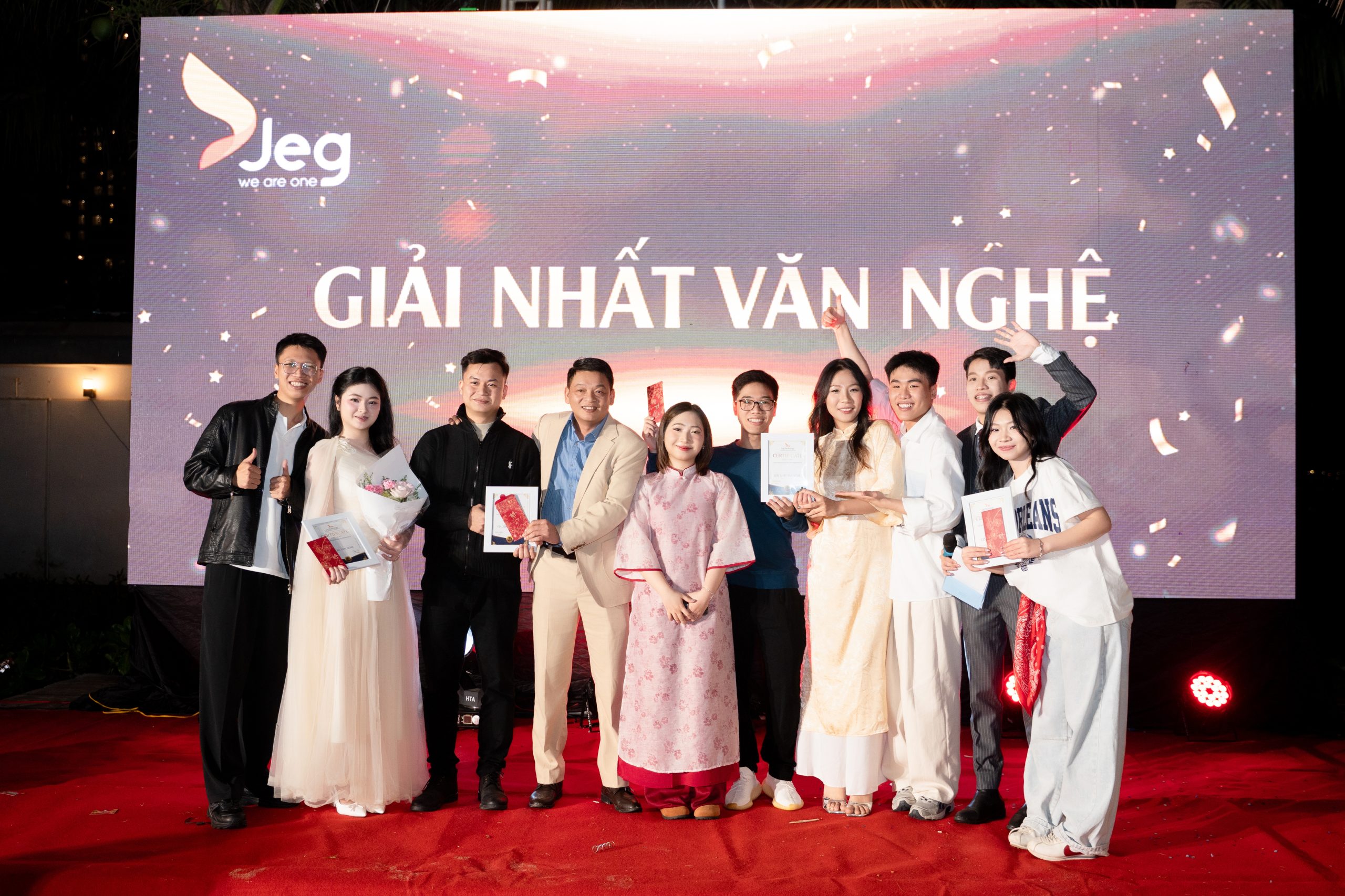 Tạm gác lại những bộn bề trong năm qua, chúng ta đã ngồi lại bên nhau như những người thân thiết. Những nụ cười rạng rỡ, những cái bắt tay chúc mừng cho các cá nhân xuất sắc, và cả những màn “quẩy” hết mình trên sân khấu… tất cả đã tạo nên một tinh thần JEG bất diệt.